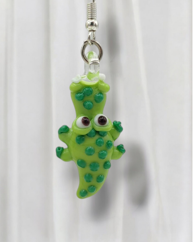 Composition: glass crocodile bead (3cm x 2cm), little glass leaves, little Phragmites, strasses, little crystals.