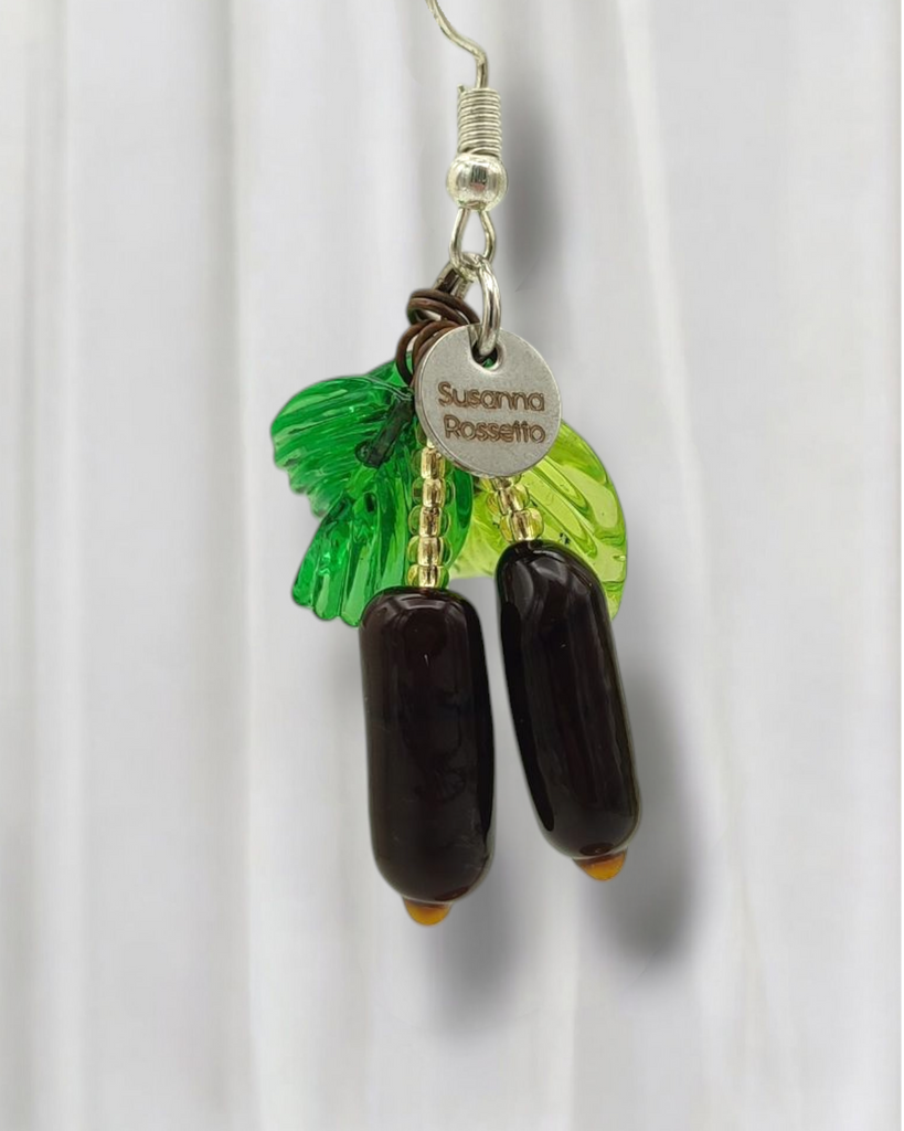 The earrings are made of pendants and beads, everything made of Murano glass, all made by us.